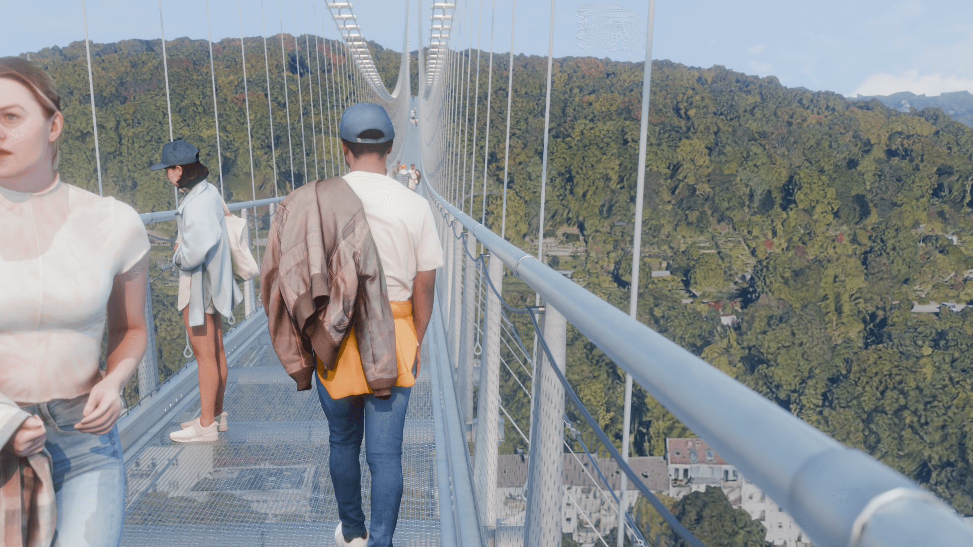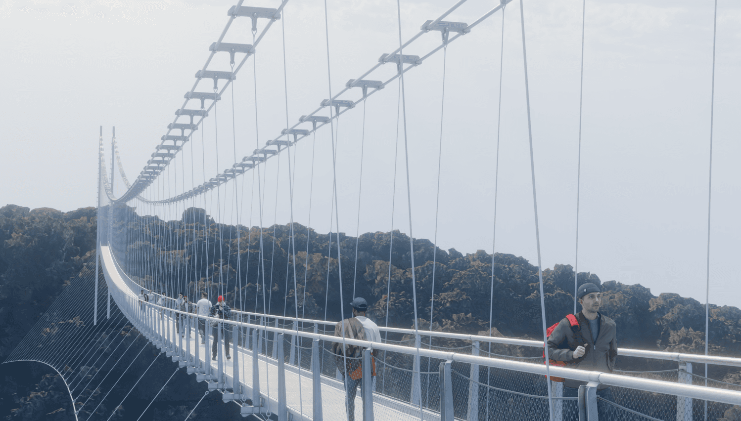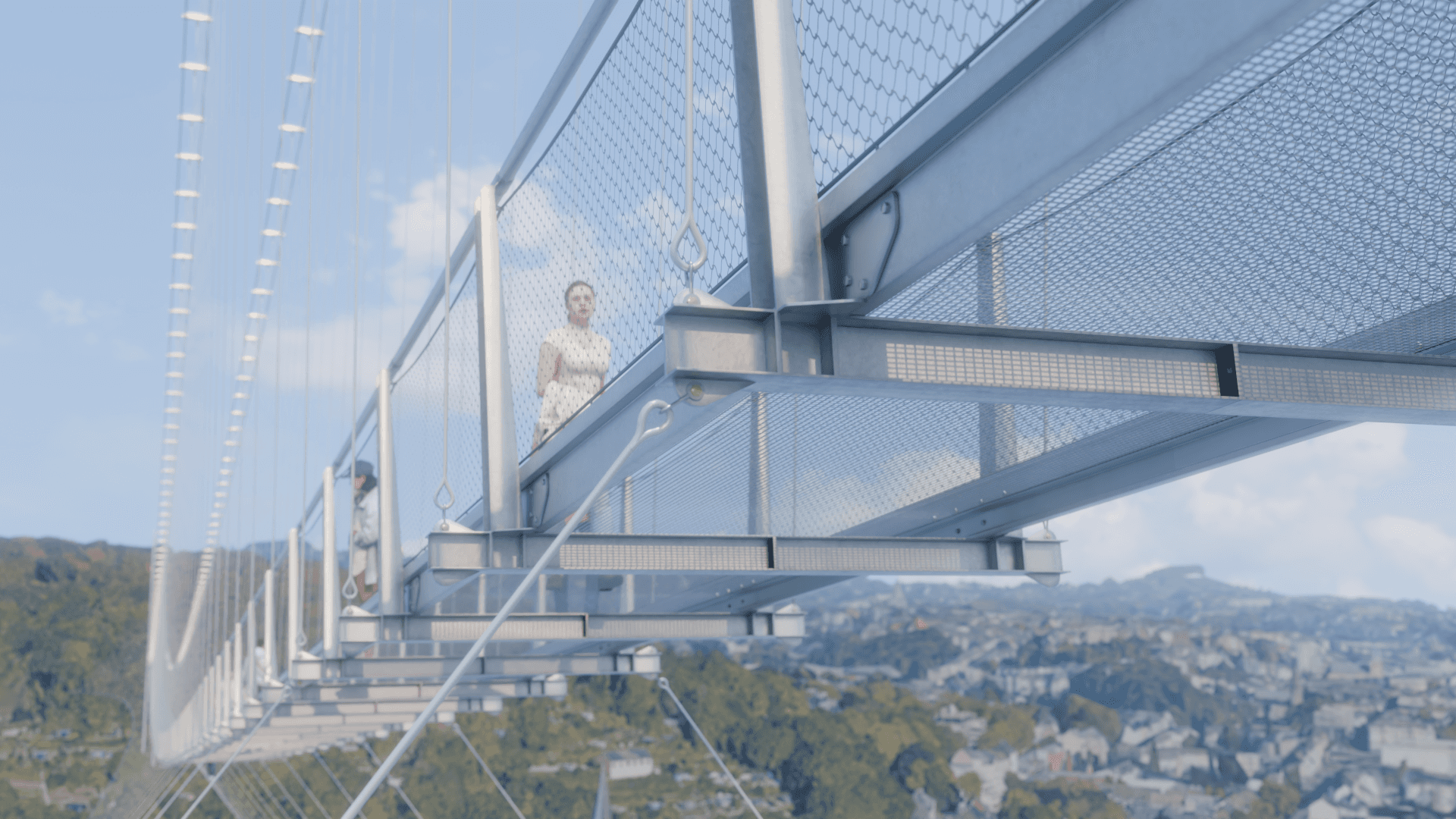 • Echtzeit-Renderings und ultrarealistische Visualisierungen der vorgeschlagenen Brücke, nahtlos in die bestehende Umgebung integriert durch präzise Fotoabgleichstechniken.